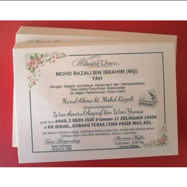 1 kursus perkahwinan 2 wang hantaran 3 mas kahwin 4 upah jurunikah 5 kad jemputan 6 setem 7 cincin tunang 8 gelang / cincin kahwin *optional according to budget 9 barang. Dapatkan kad kahwin, banner/bunting kahwin, sticker kahwin, button badge yang termurah di malaysia. Kad perkahwinan premium bajet kos upah : Ekad kahwin bajet rendah menjalankan perniagaan hanya dari rumah sahaja.tetapi pelanggan masih boleh berurusan dengan kami dengan berjumpa di sekitar bandar baru bangi,selangor. Kad kahwin @ wedding card pm kami untuk dapatkan harga promosi+freegift! Beritahu bajet anda dan kami akan bantu beri anda pakej terbaik.minimum order bagi kad kahwin adalah 500pcs. Hal ini kerana ia akan dicetak diatas sekeping kad seperti. 3,193 likes · 11 talking about this. Sekiranya anda yang sedang memilih design kad kahwin untuk perkahwinan, anda berada di tempat yang betul. Kami telah menyediakan pelbagai pakej kad kahwin murah untuk memenuhi kehendakkan anda! Letak je harga bajet kahwin korang, saya akan konsult bab kad kahwin. Kad kahwin bukan sekadar menjemput para tetamu, tetapi ia mestilah cantik untuk dilihat, kreatif dan berinformasi, supaya maklumat atur cara majlis jelas dan mudah untuk dibaca. Pilih je kad yang mana, semua cecantik & comel.